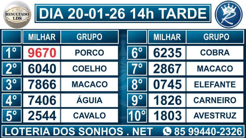 2° Resultado das 14h – Tarde
